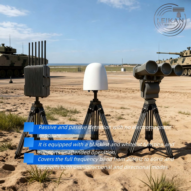 - : Λαμβάνει μόνο παθητικά (χωρίς μετάδοση ηλεκτρομαγνητικού σήματος) και ανιχνεύει τα αυθόρμητα σήματα των drones, επιτρέποντας την αναγνώριση της μάρκας, του μοντέλου και της συχνότητας των μη εξουσιοδοτημένων drones. Δεν επηρεάζεται από τη βροχή, το χιόνι ή την ομίχλη, υποστηρίζει 24/7, όλες τις καιρικές συνθήκες και 360° ανίχνευση, καλύπτοντας πάνω από το 95% των drones που διατίθενται στην αγορά.Ακριβής τοποθέτηση & έγκαιρη προειδοποίηση μεγάλης εμβέλειας